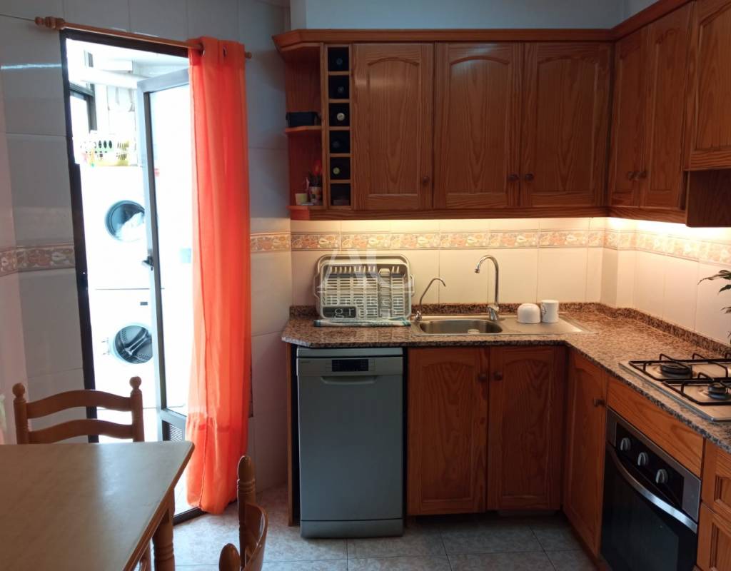 *Suelo de terrazo en la vivienda, carpintería de cocina chapada en madera y suelo porcelánico en cocina y baños.